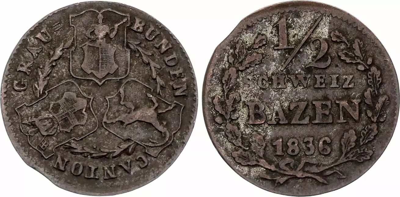 Coin Switzerland 1/2 Bazen - Canton of Grisons - 1836