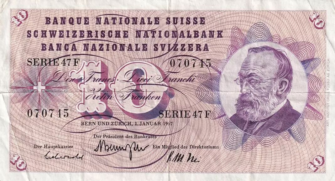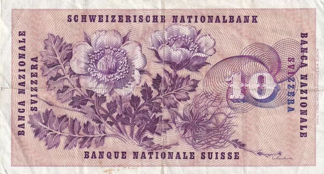 Banknote Switzerland 10 Francs 1967 - Gottfried Keller, Carnation Flowers - Serial 47F