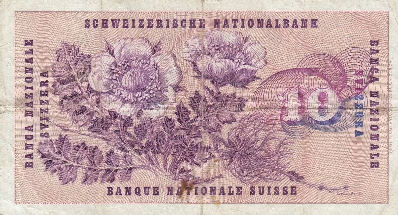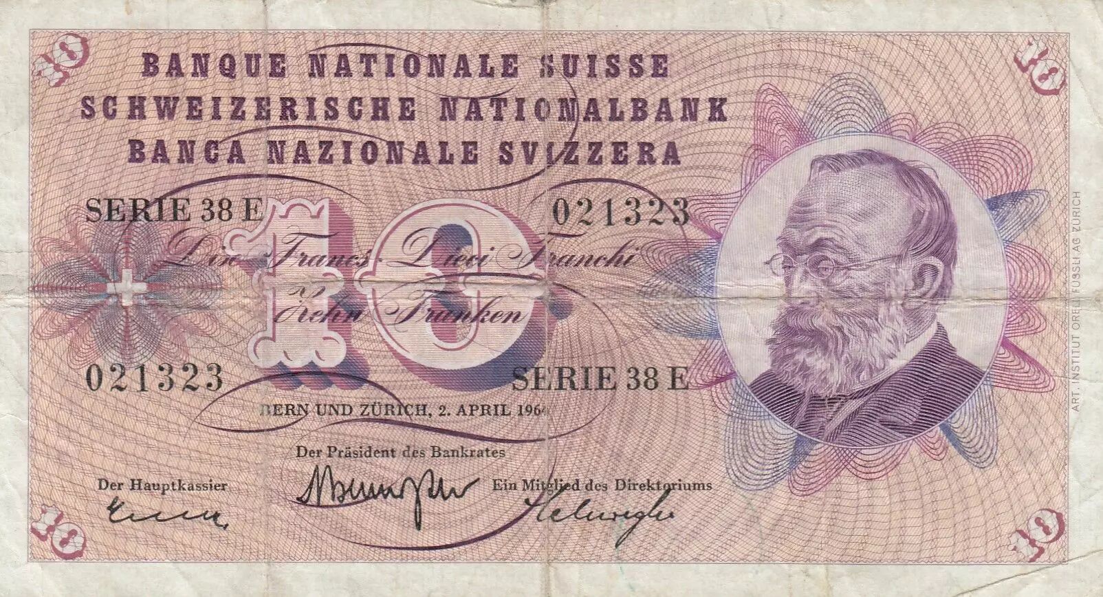 Home > World Banknotes > European Banknotes > Switzerland - Swiss Cantons > Switzerland > Switzerland 10 Francs - Gottfried Keller - Carnation Flowers - 02-04-1964 - Serial 38E