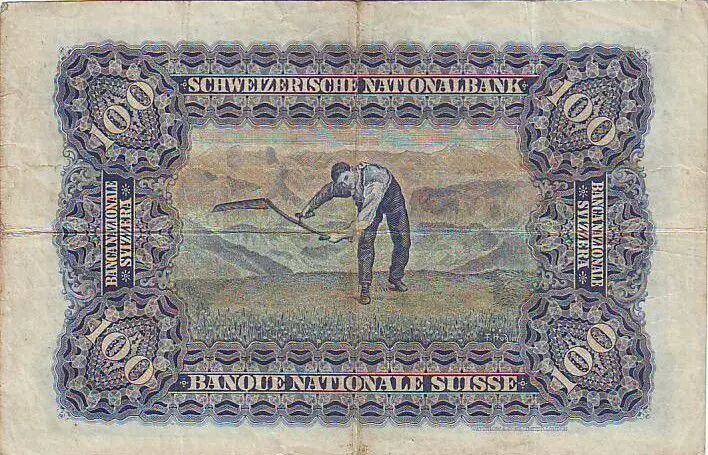 Banknote Switzerland 100 Francs 1928 - Woman's head, peasant