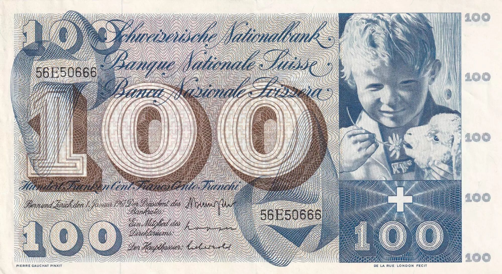 Home > > Switzerland 100 Francs Child St Martin - 01-01-1967 - Serial 56E