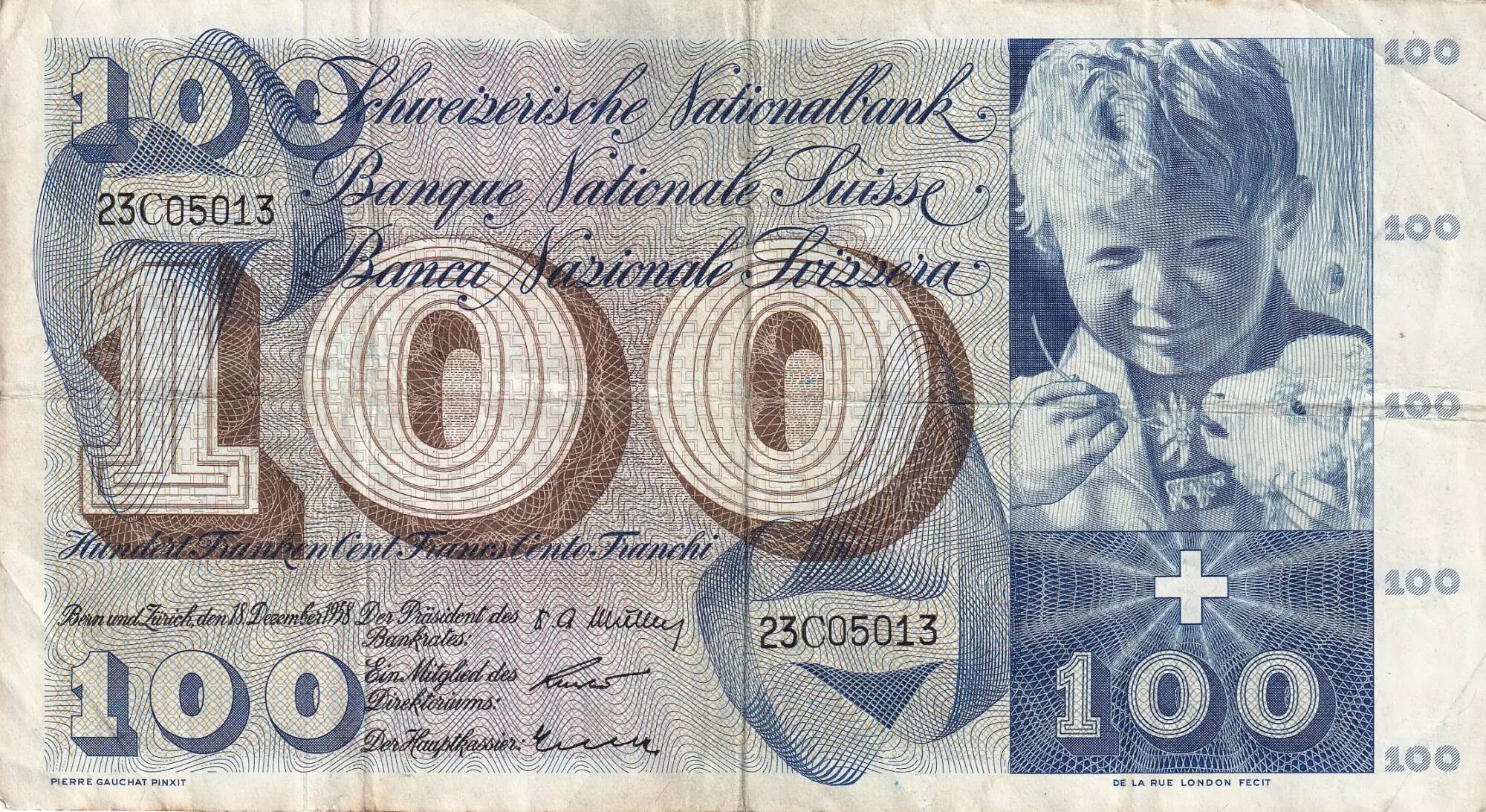 Banknote Switzerland 100 Francs Child St Martin - 18-12-1958 - Serial 23C