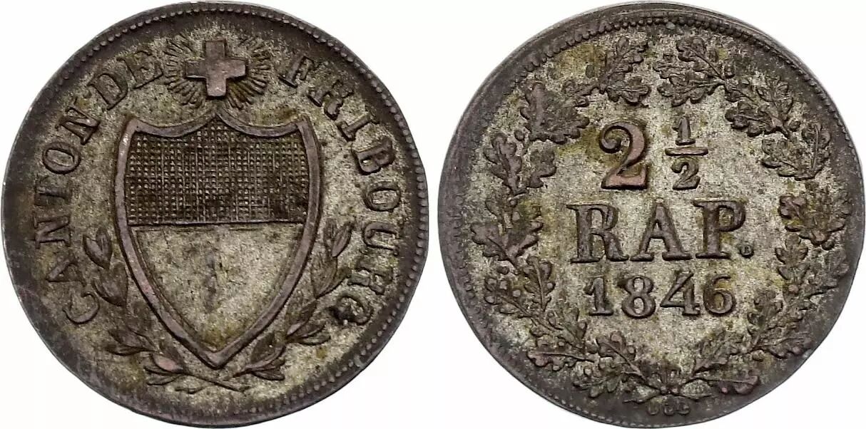 Coin Switzerland 2 1/2 Rappen - Canton of Fribourg - 1846