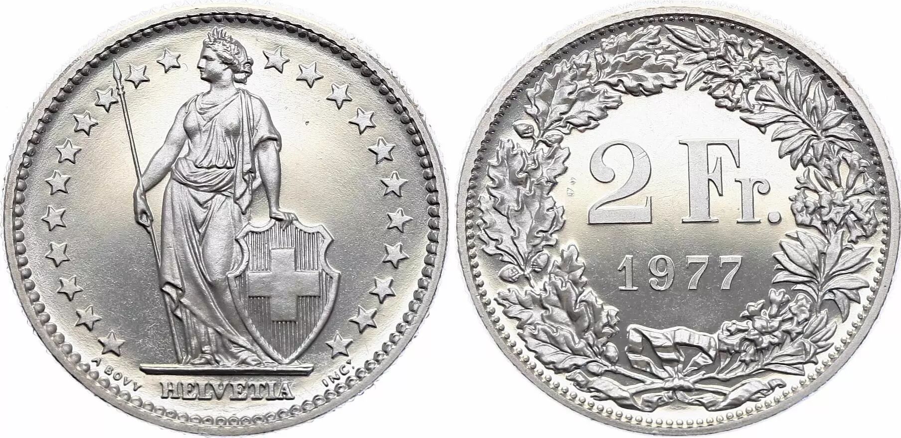 Home > > Switzerland 2 Francs - Helvetia - 1977
