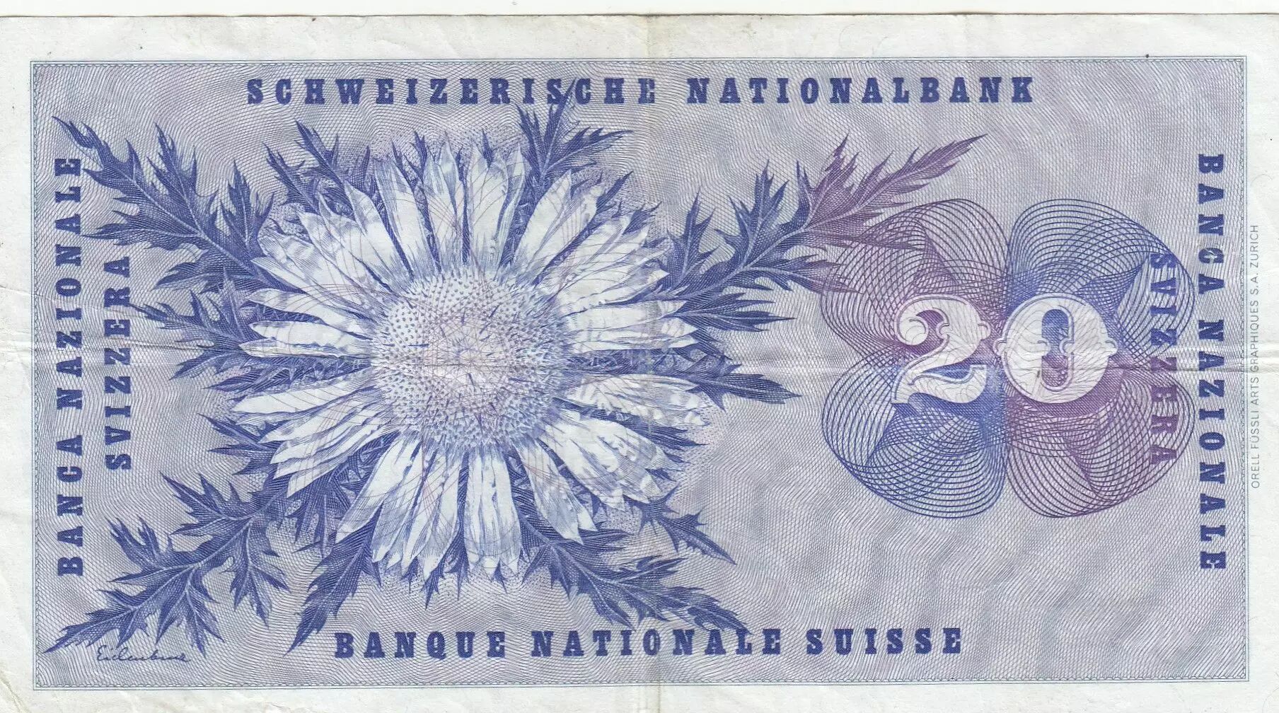 Home > World Banknotes > European Banknotes > Switzerland - Swiss Cantons > Switzerland > Switzerland 20 Francs - Guillaume-Henri Dufour - Silver thistle - 10-02-1971 - Serial 78Z