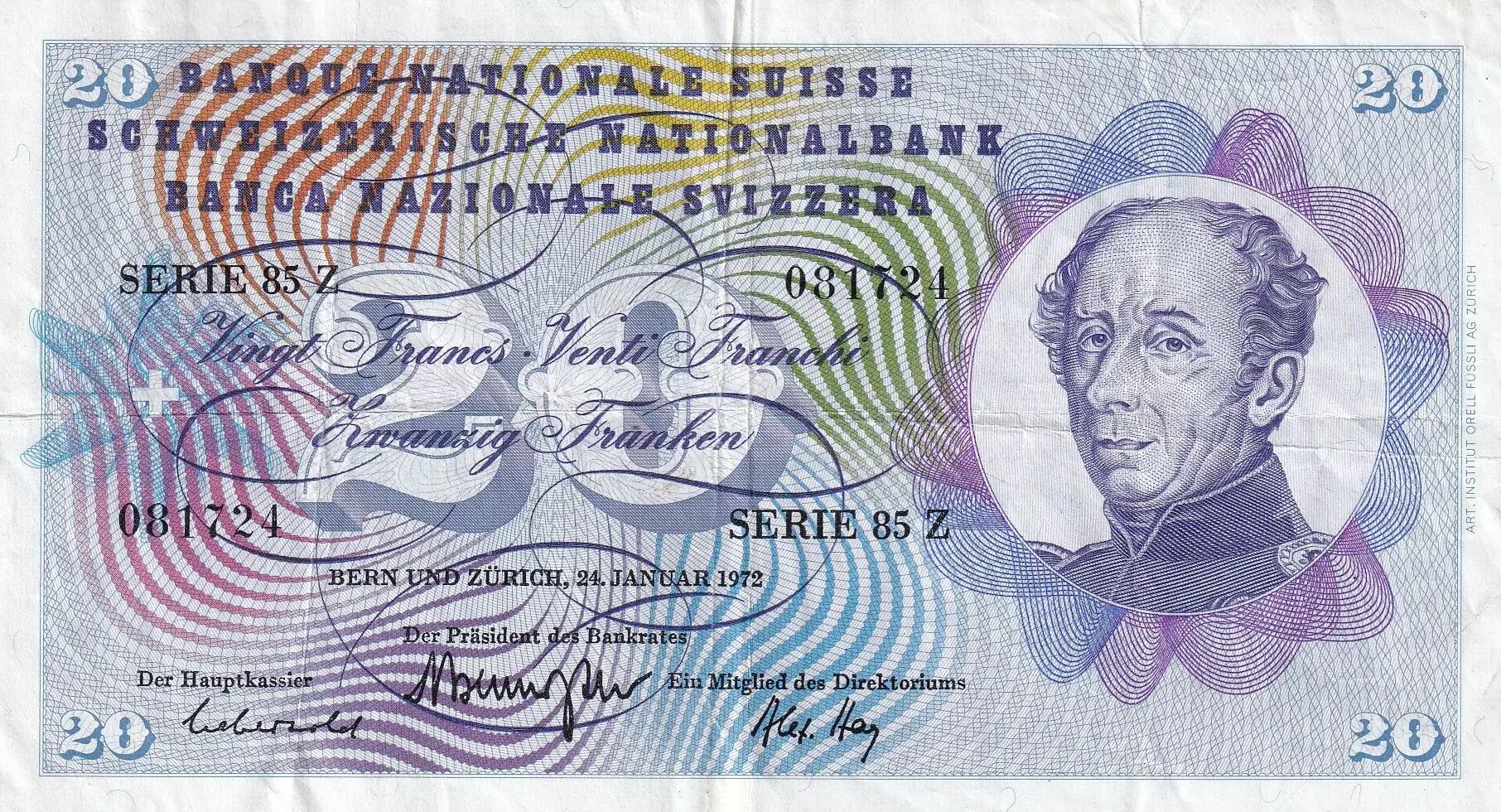 Banknote Switzerland 20 Francs - Guillaume-Henri Dufour - Silver thistle - 1972 - P.46t