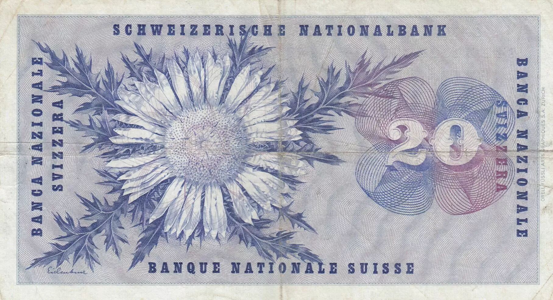 Home > World Banknotes > European Banknotes > Switzerland - Swiss Cantons > Switzerland > Switzerland 20 Francs - Guillaume-Henri Dufour - Silver thistle - 21-02-1965 - Serial 43C