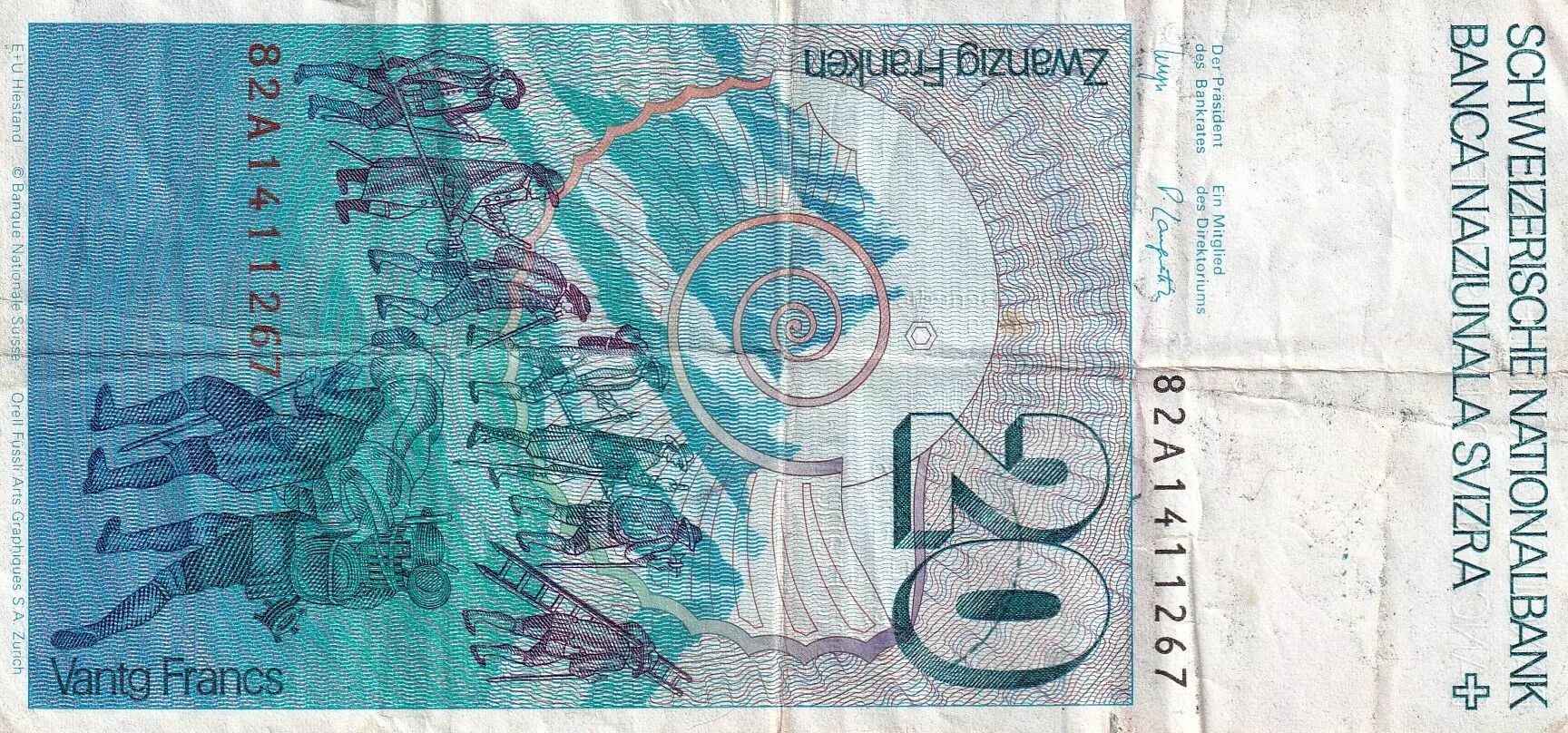Banknote Switzerland 20 Francs Horace Bénédict de Saussure - 1982 - Serial 82A