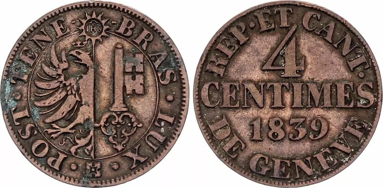Home > > Switzerland 4 Centimes - Canton of Genève - 1839