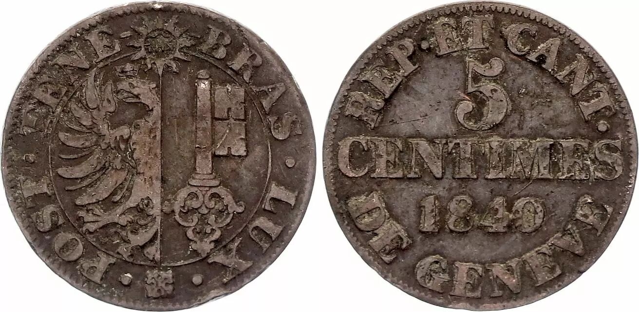 Home > > Switzerland 5 Centimes - Canton of Genève - 1840