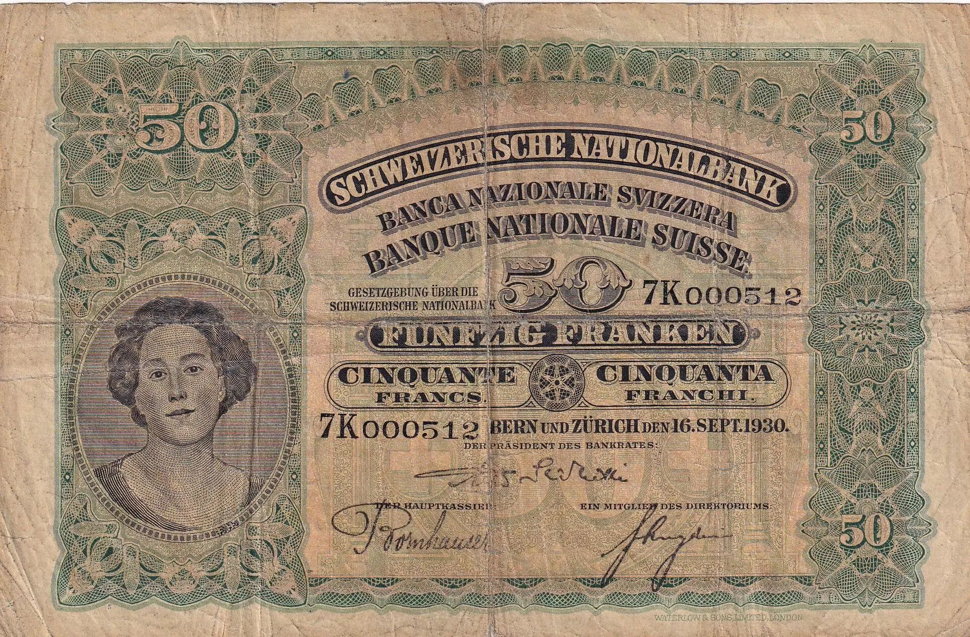 Home > > Switzerland 50 Francs Woman's head - 16-09-1930 - Serial 7K