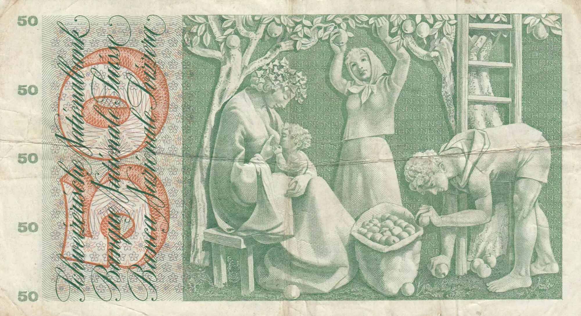 Home > World Banknotes > European Banknotes > Switzerland - Swiss Cantons > Switzerland > Switzerland 50 Francs Young girl - Harvesting apple - 1955 - P.47a - Serial 2Z