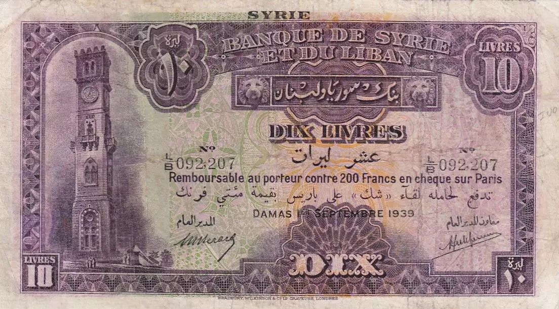 Banknote Syrian Arab Republic 10 Livres Banque de Syrie et du Liban - 01-09-1939 - L-B 092207