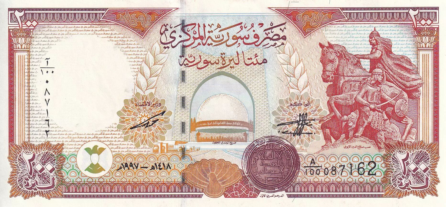 Home > World Banknotes > Asian Banknotes > Syria > Syrian Arab Republic 200 Pounds - Monument - Factory - 1997 - P.109