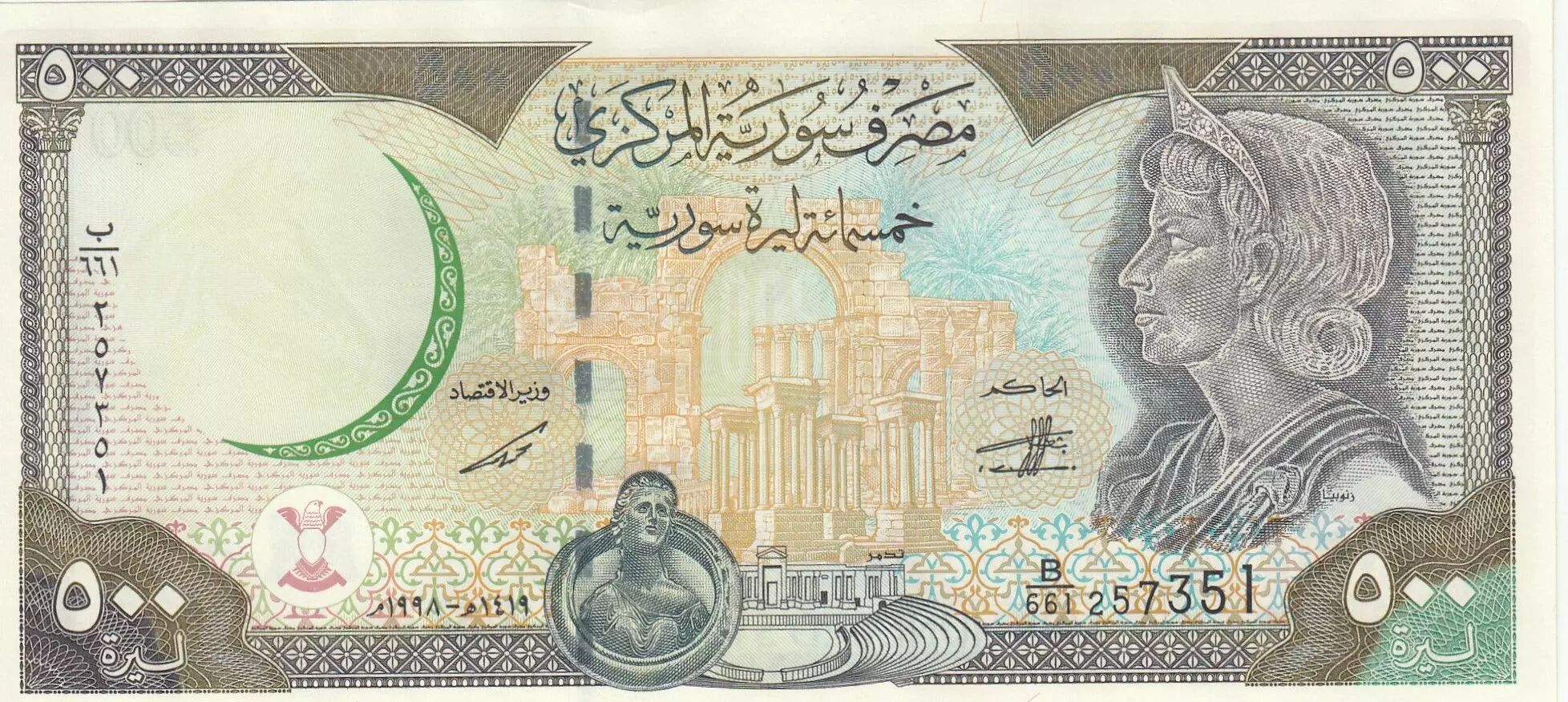 Banknote Syrian Arab Republic 500 Pounds - Queen Zenobia - 1998 - Serial B.661