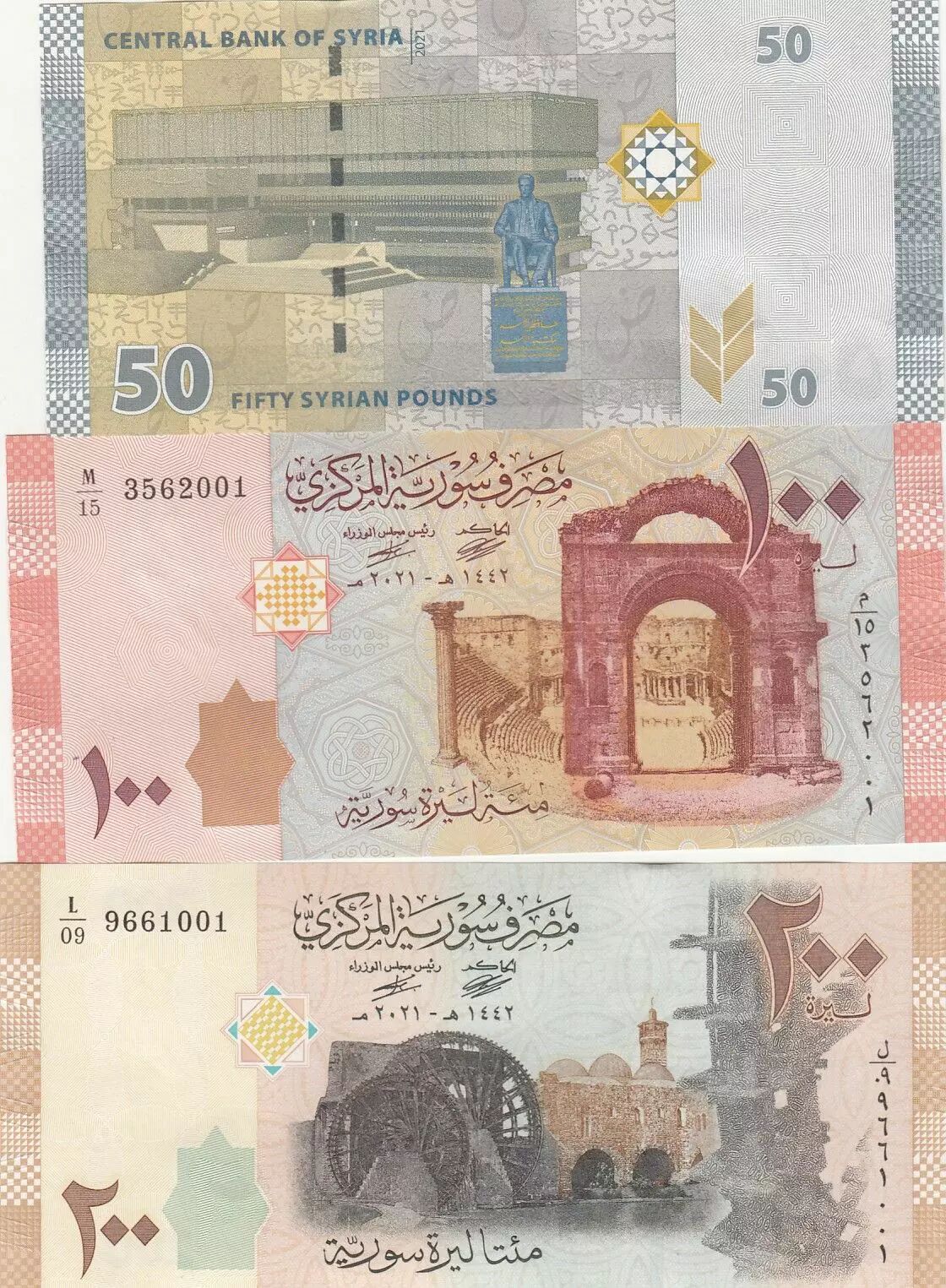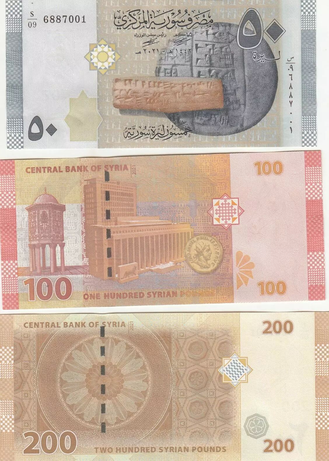 Home > World Banknotes > Asian Banknotes > Syria > Syrian Arab Republic Series of 3 banknotes - 50, 100 and 200 pounds - 2022