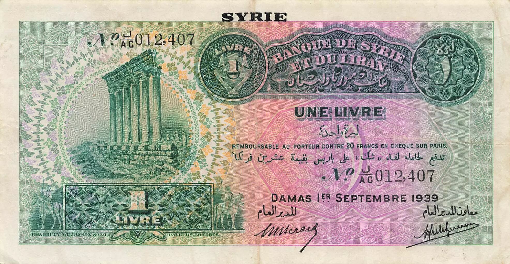 Billet Syrie 1 Livre - 01-09-1939 - P.40