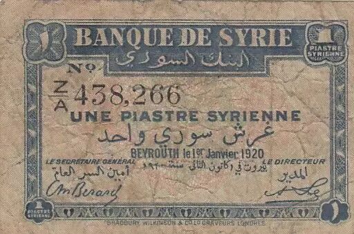 Billet Syrie 1 Piastre - Ruines de Balbeeck - Série ZA - 1920 - P.6