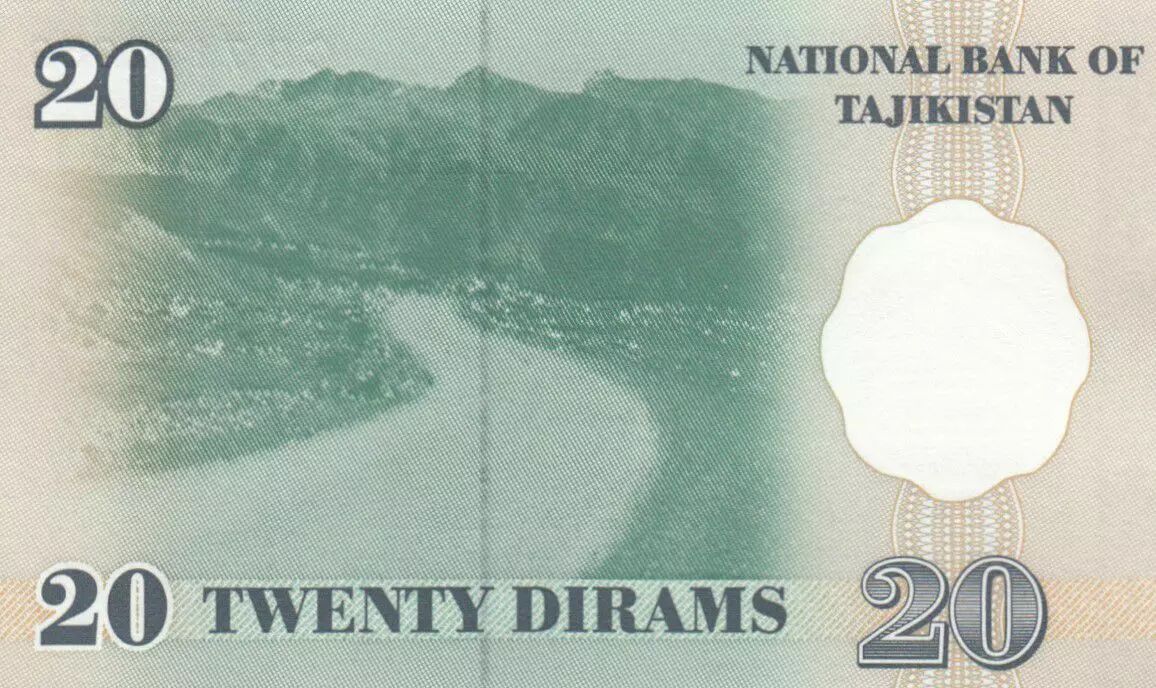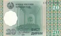 Billet Tadjikistan 20 Dirams 1999 - Parlement, Route de montagne