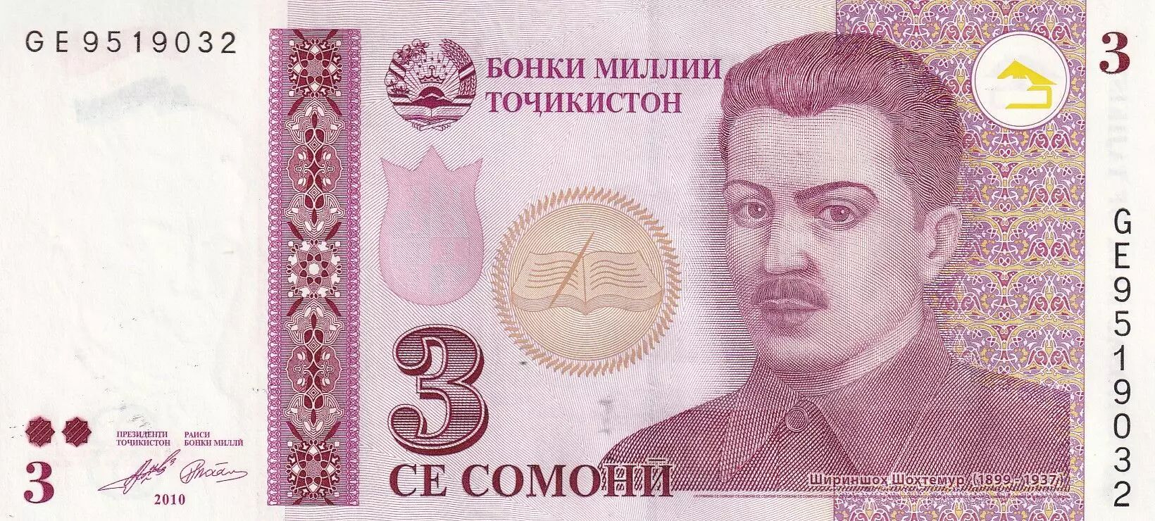 Accueil > Billets du Monde > Billets d'Asie > Tadjikistan > Tadjikistan 3 Somoni - Shirinsho Shotemur - 2010 - Série GE