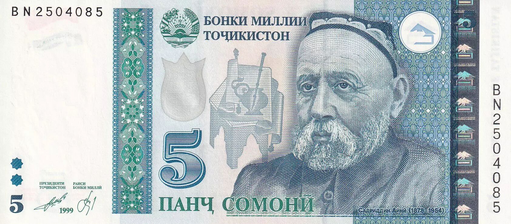 Billet Tadjikistan 5 Somoni - S. Ayni - Tombeau de A. Rudaki - 1999