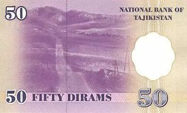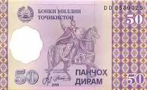 Accueil > Billets du Monde > Billets d'Asie > Tadjikistan > Tadjikistan 50 Dirams Statue de Somoni - Route de plaine - 1999