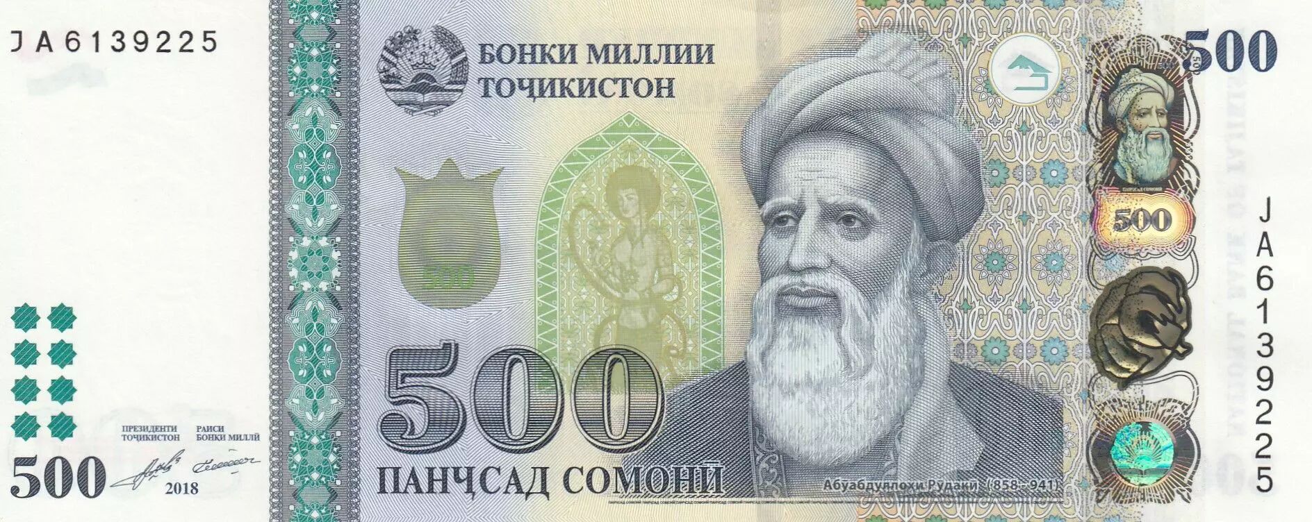 Billet Tadjikistan 500 Somoni - Ab?abdullohi R?dak? (858-941)- 2018 - Série JA