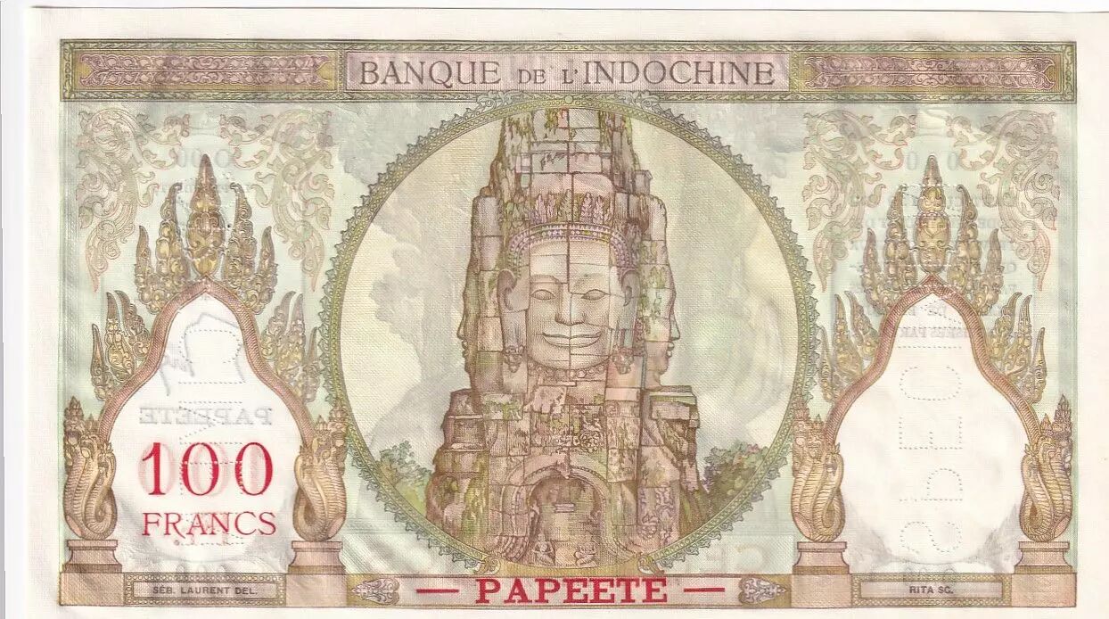 Accueil > Archivage > Tahiti 100 Francs Ruines d'Angkor - ND (1956) - Double perforation Spécimen