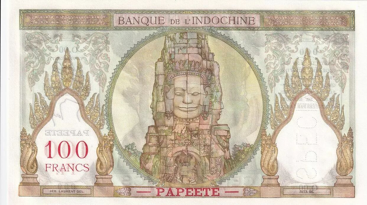 Home > > Tahiti 100 Francs Statue of Angkor - ND (1956) - Specimen - UNC