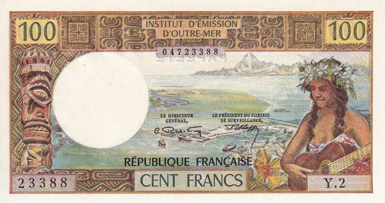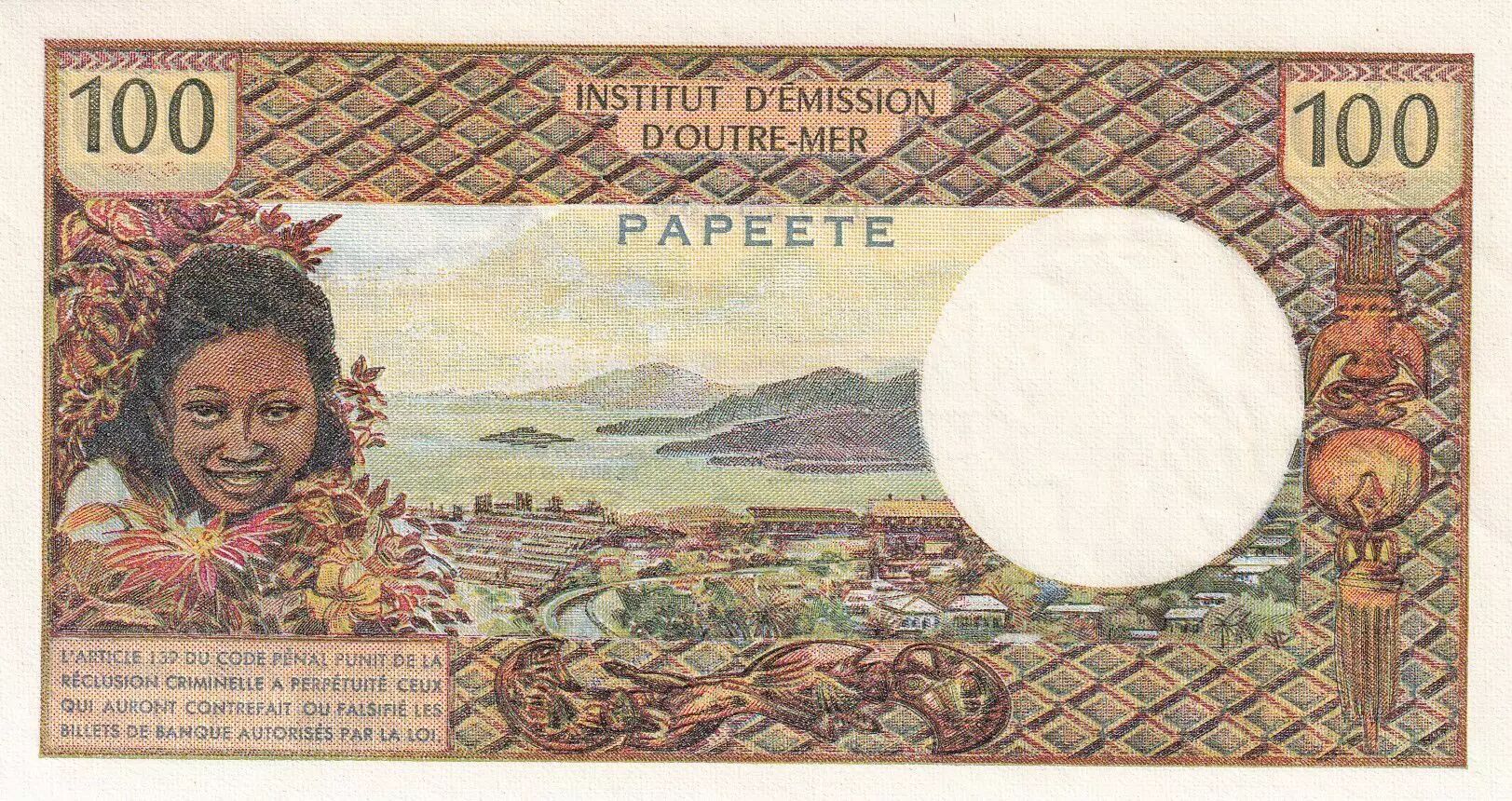 Accueil > Archivage > Tahiti 100 Francs Tahitienne - 1971 - Série Y.2 - PNEUF - P.24a