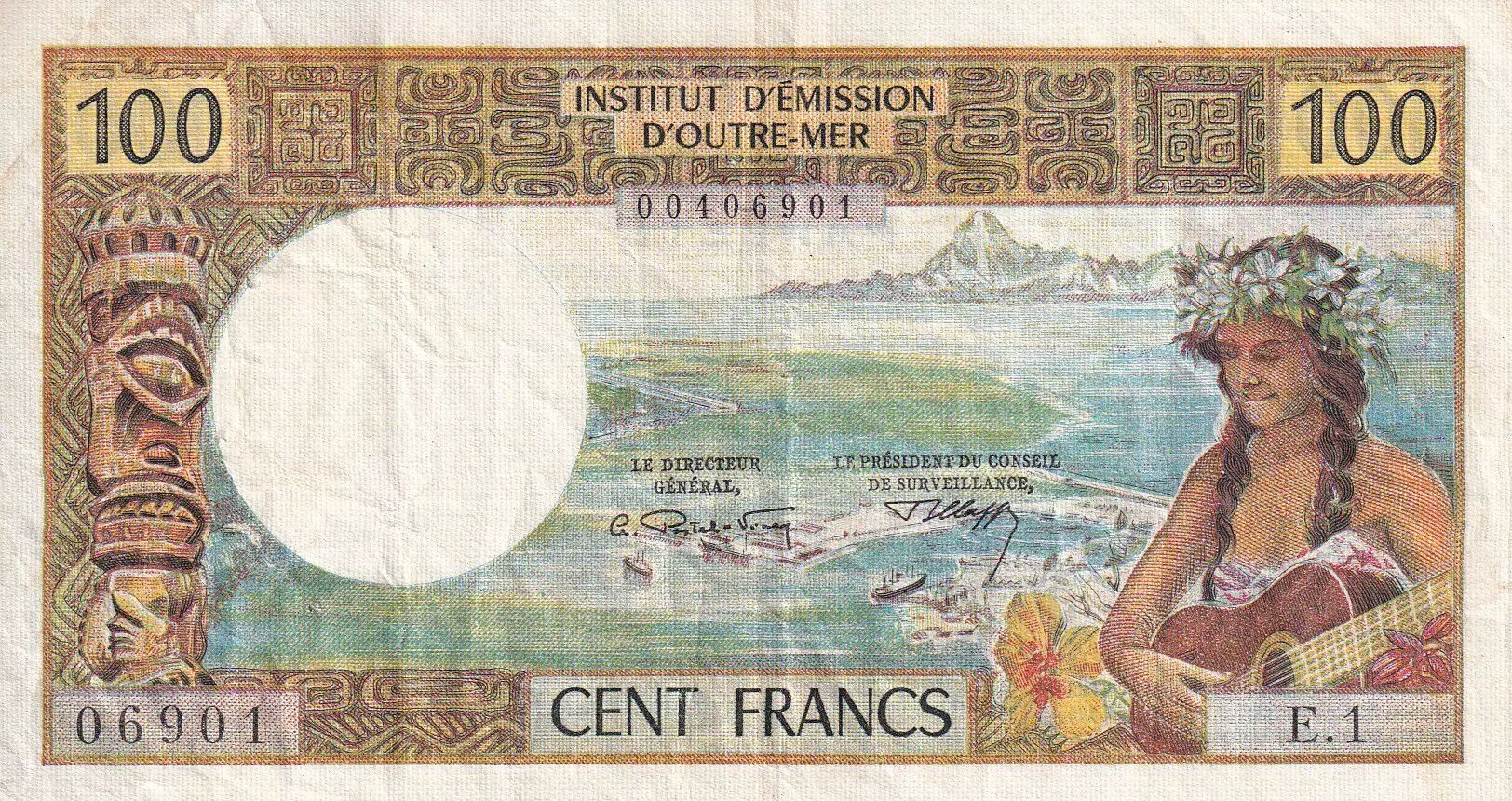 Banknote Tahiti 100 Francs - Young girl - 1971 - Serial E.1 - P.24a