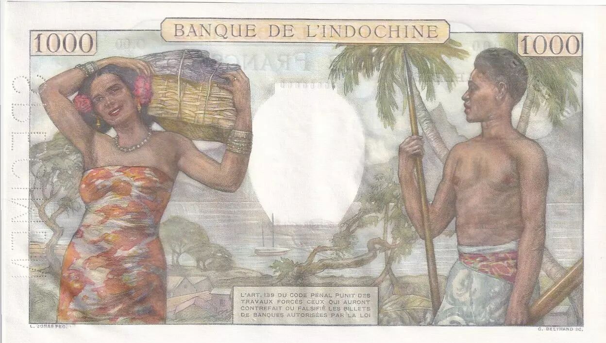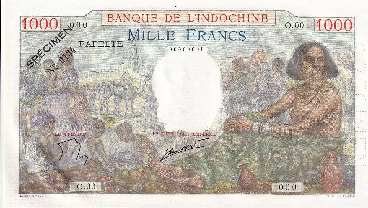 Banknote Tahiti 1000 Francs Market Scene - ND (1957) - Serial O.00 - Specimen n°0134 - UNC