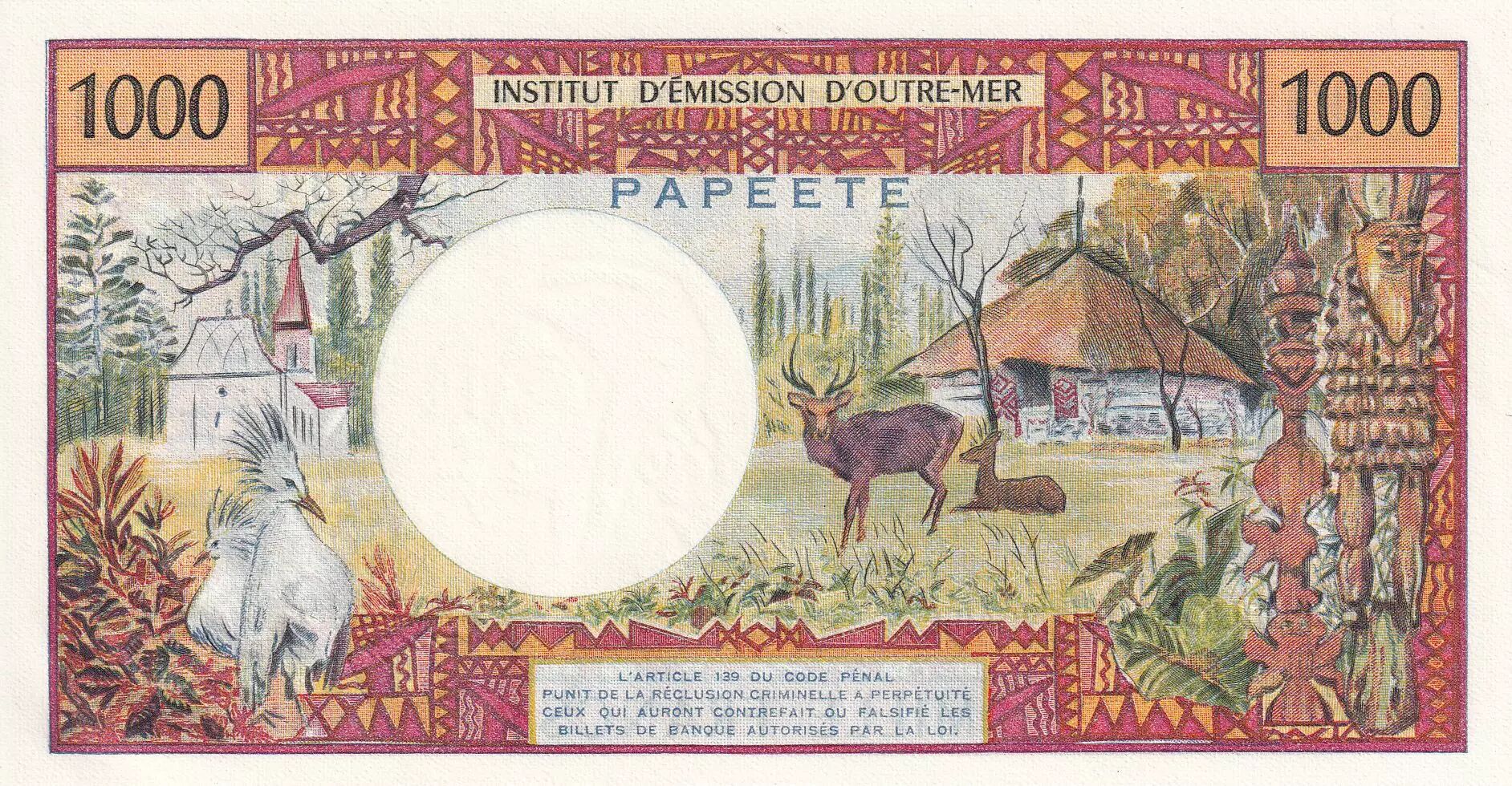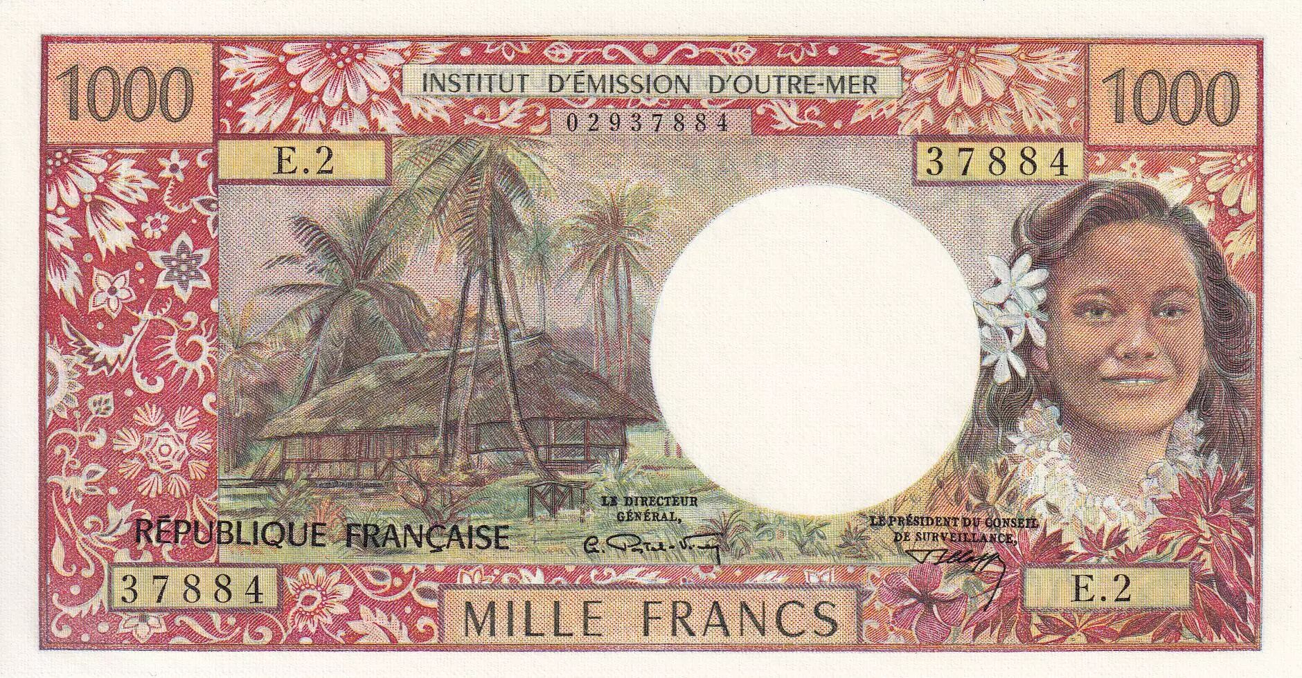 Home > > Tahiti 1000 Francs Tahitian woman - Hut in palm trees - 1971 - E.2 - PUNC - P.27a