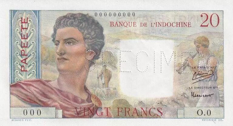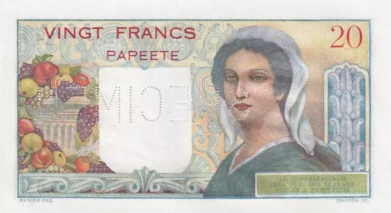 Accueil > Archivage > Tahiti 20 Francs Jeune Berger - ND (1951) - Spécimen