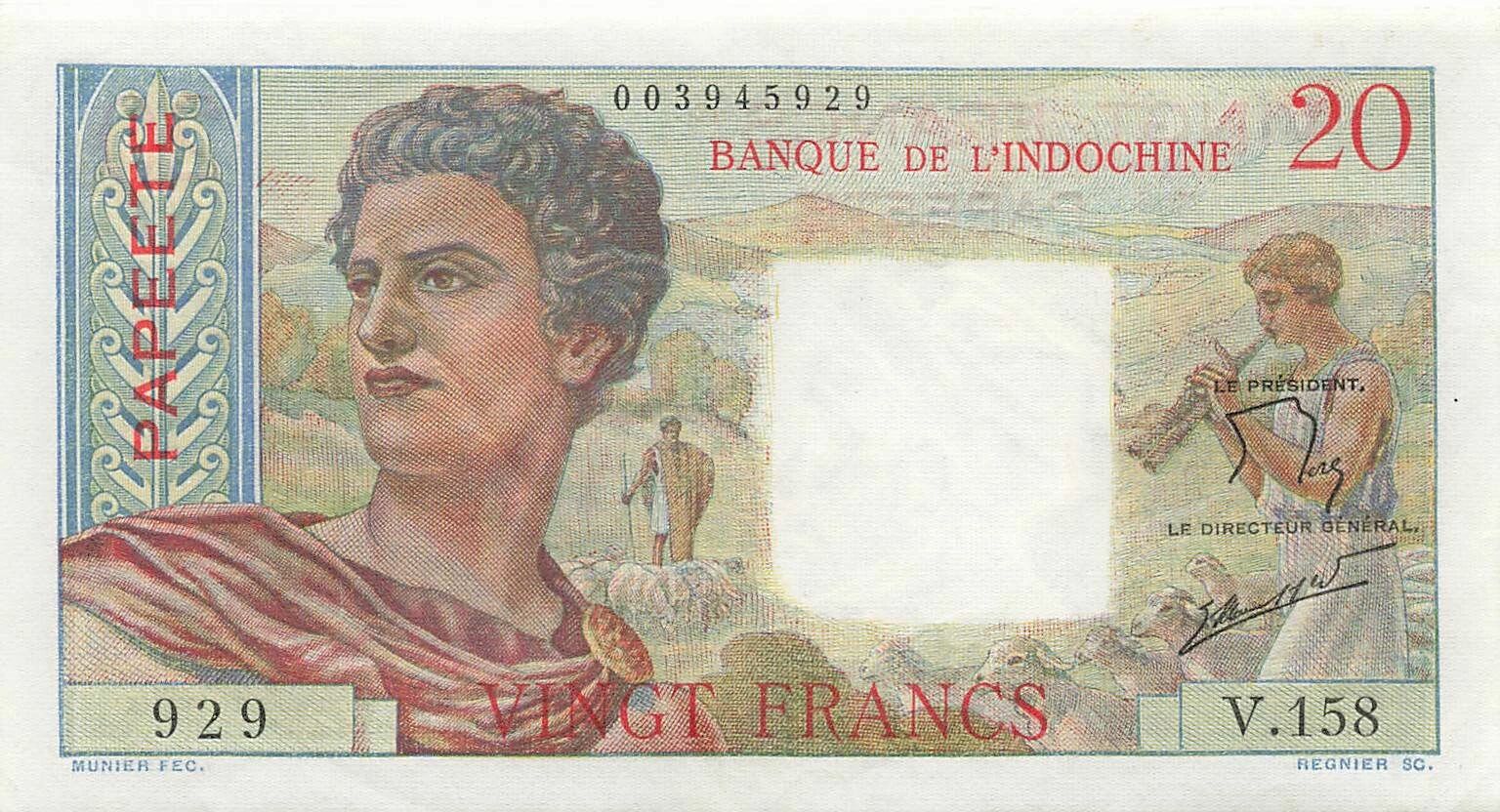 Accueil > Billets du Monde > Billets d'Océanie > Tahiti > Tahiti 20 Francs - Jeune berger - ND (1963) - P.21c