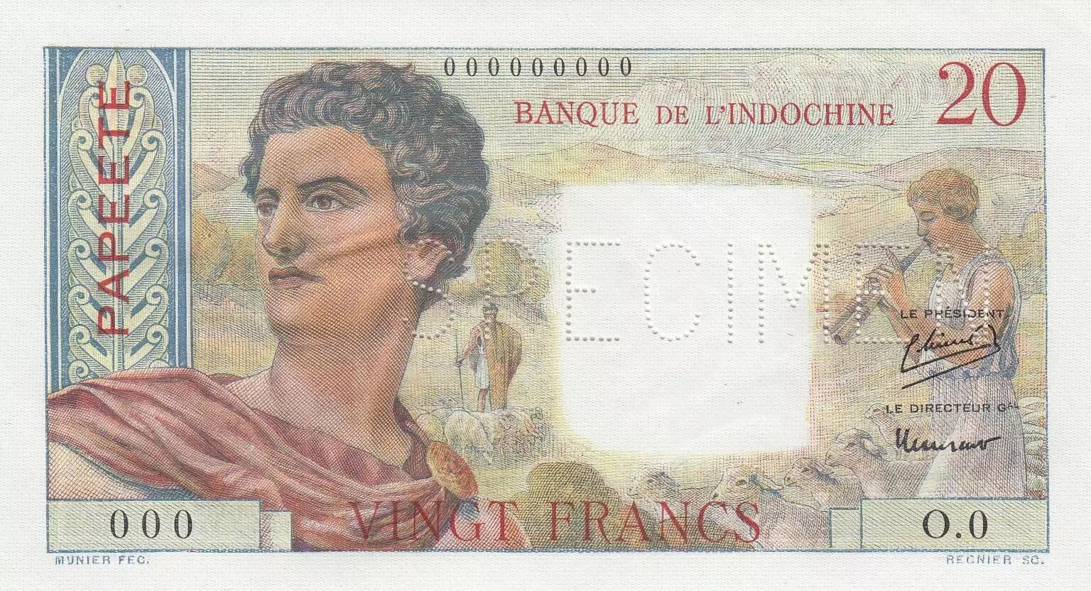 Home > > Tahiti 20 Francs Young farmer - ND (1951) - Specimen P.21
