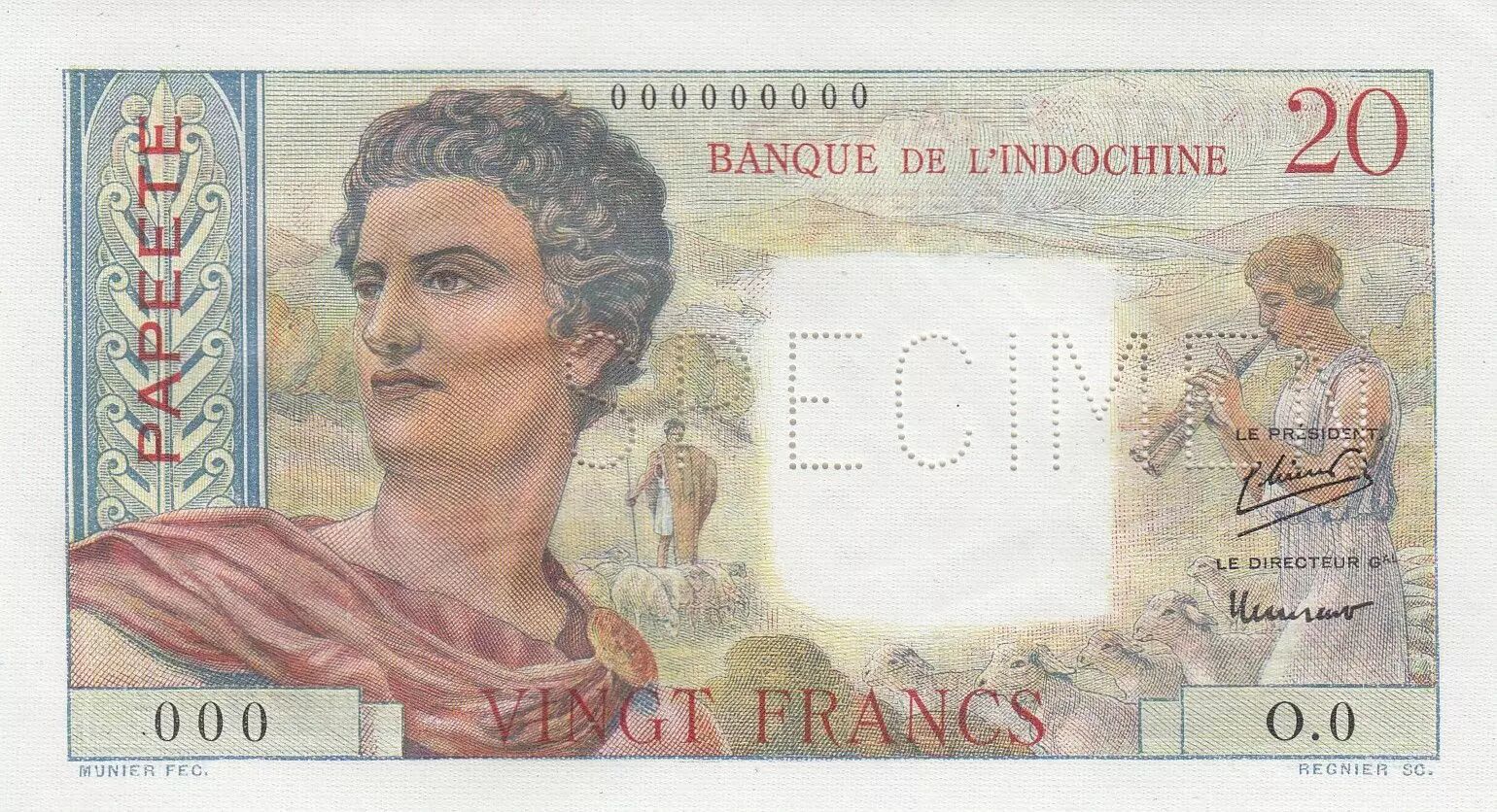 Home > > Tahiti 20 Francs Young farmer - ND (1951) - Specimen P.21