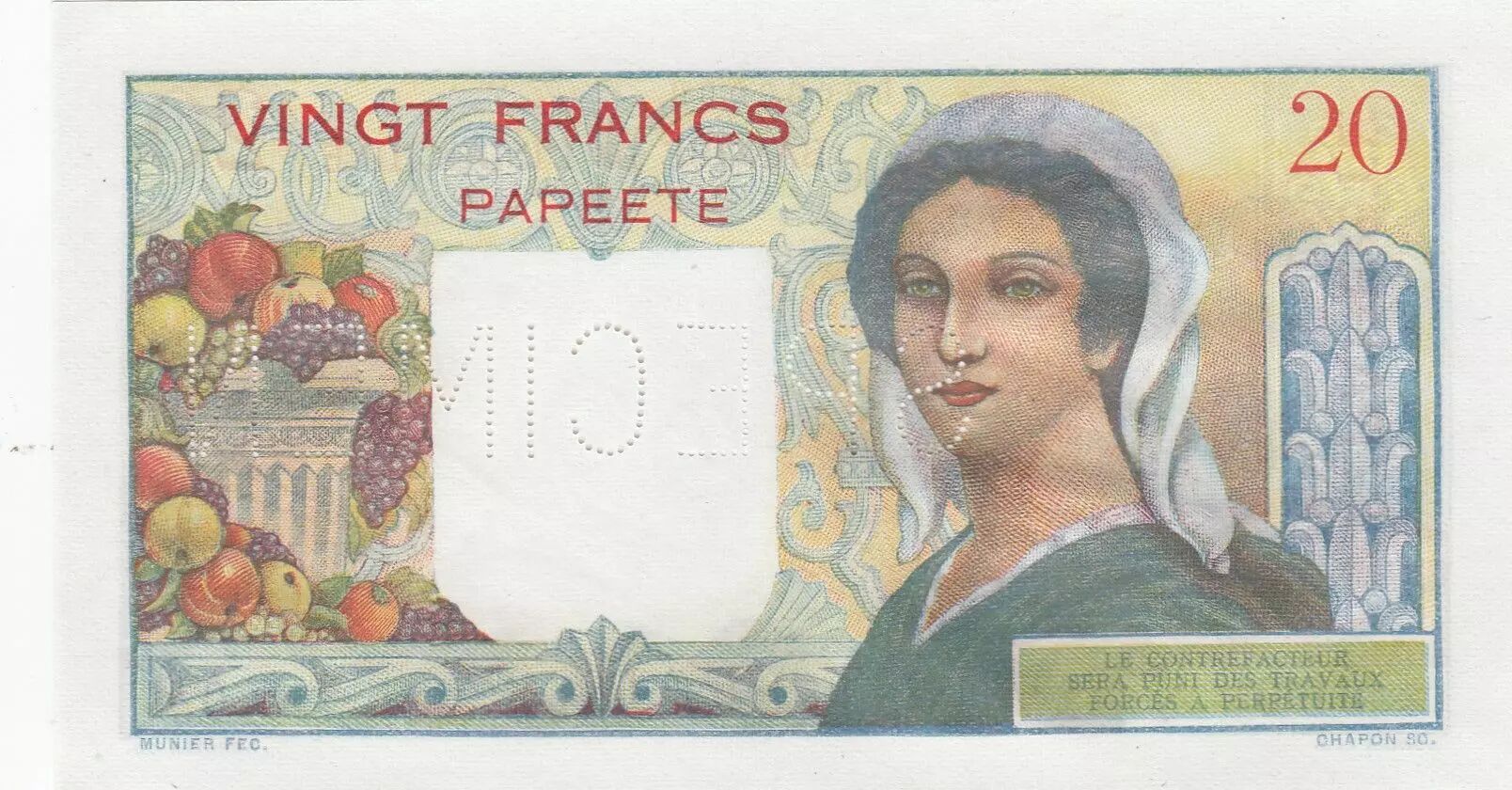 Banknote Tahiti 20 Francs Young farmer - ND (1951) - Specimen P.21