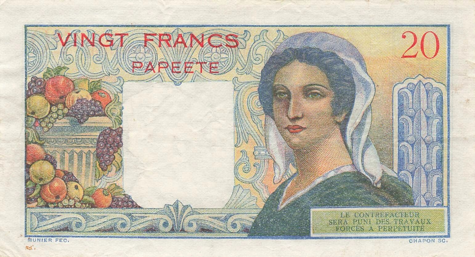 Home > World Banknotes > Oceania Banknotes > Tahiti > Tahiti 20 Francs - Young Sheperd - ND (1954-58) - P.21b