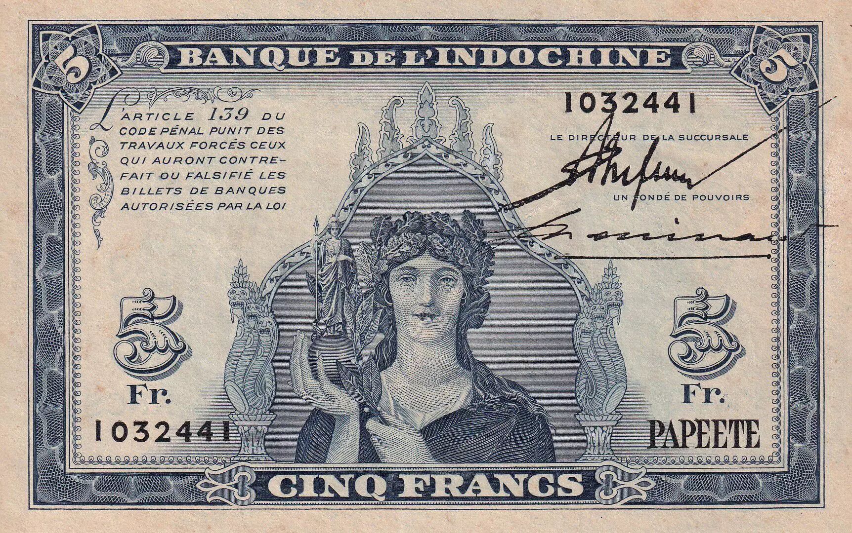 Home > > Tahiti 5 Francs - Papeete - 1944 - AU - P.19a