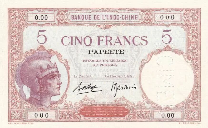 Accueil > Archivage > Tahiti 5 Francs - Walhain - ND (1936) - Spécimen