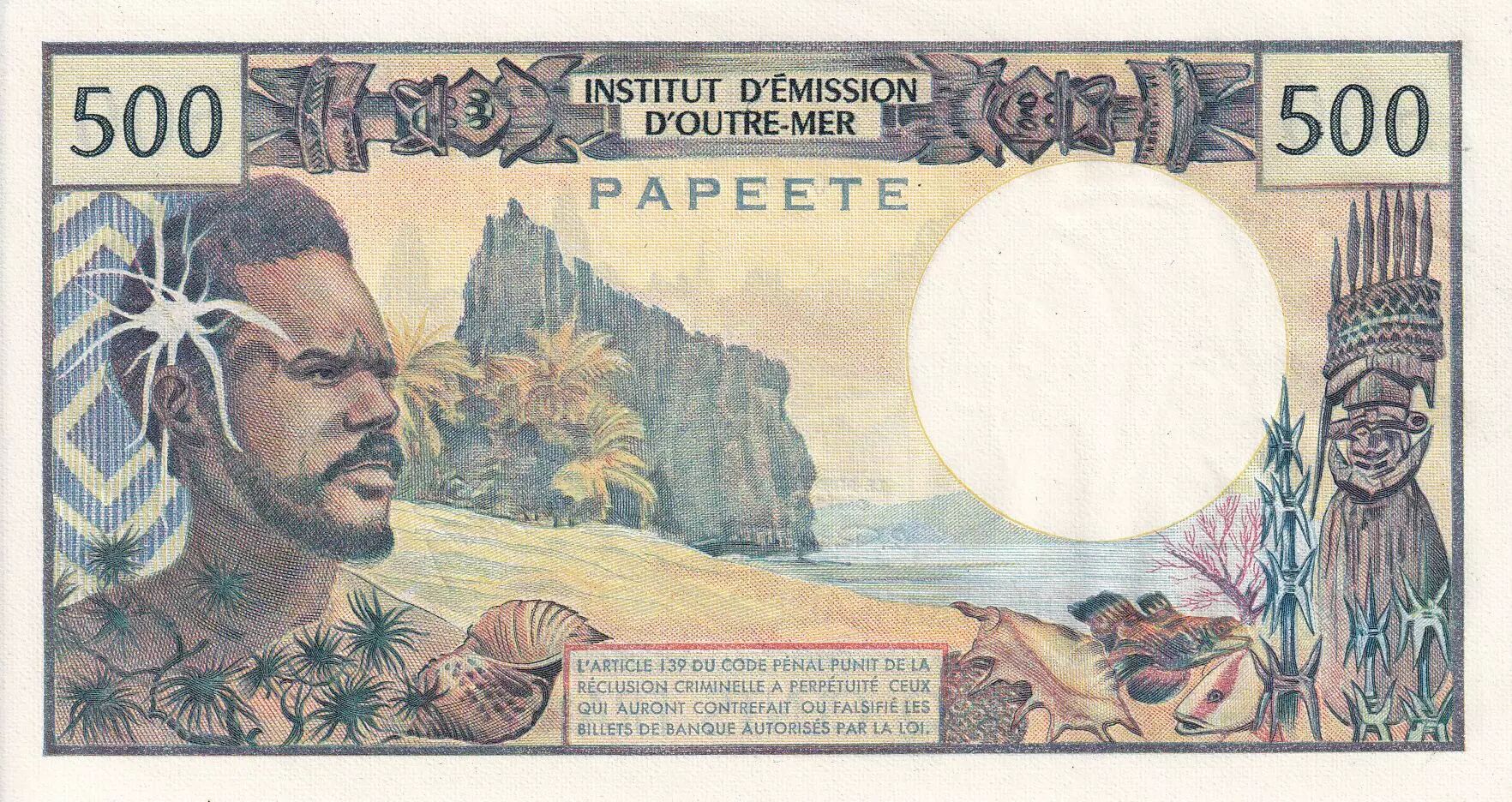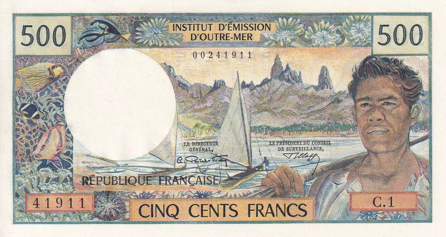 Accueil > Archivage > Tahiti 500 Francs Polynésien - Pirogue - 1970 - Série C.1 - PNEUF - P.25a
