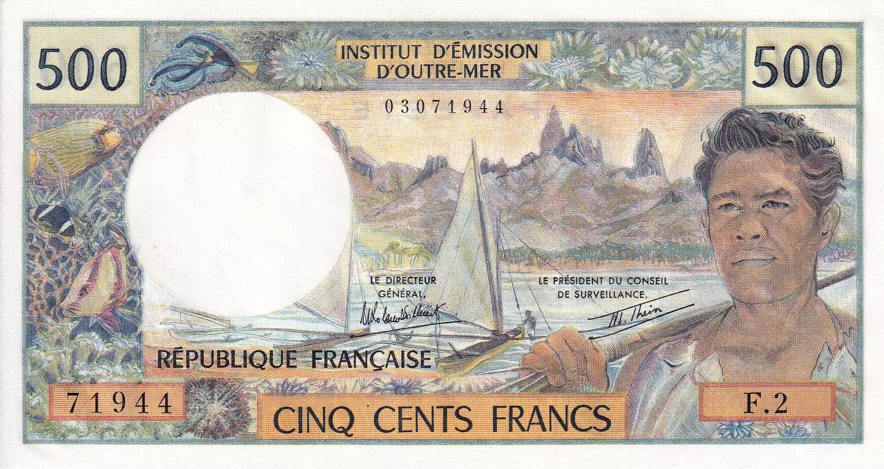 Billet Tahiti 500 Francs Polynésien - Pirogue - 1977 - Série F.2 - NEUF - P.25b2