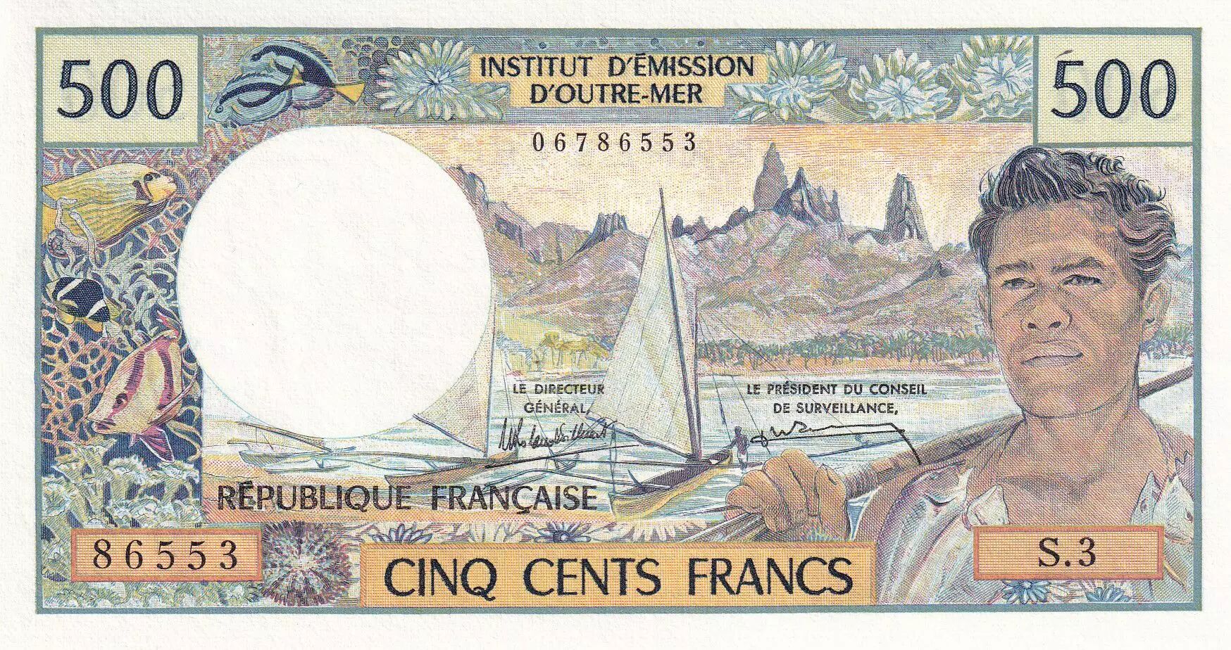 Accueil > Archivage > Tahiti 500 Francs - Polynésien - Pirogue - ND (1985) - Série S.3 - P.25d