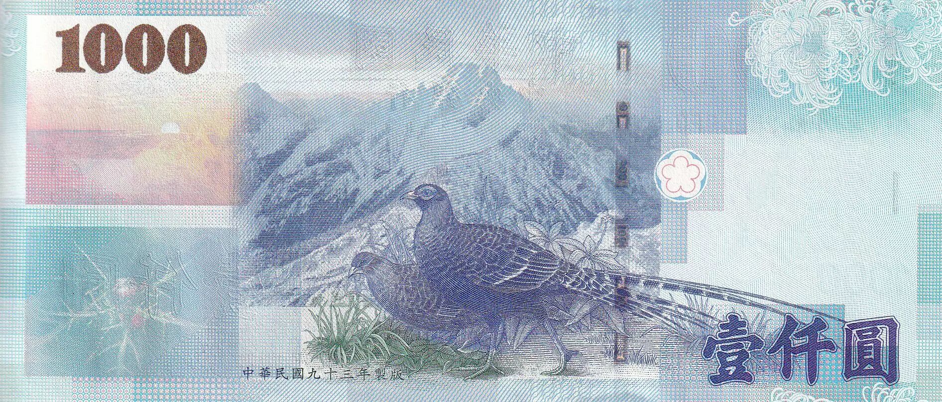 Banknote Taiwan 1000 New dollars - Childrens - Pheasants - 2004 - P.1997