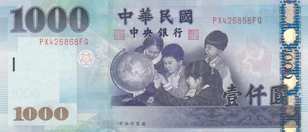 Home > World Banknotes > Asian Banknotes > Taiwan > Taiwan 1000 New dollars - Childrens - Pheasants - 2004 - P.1997