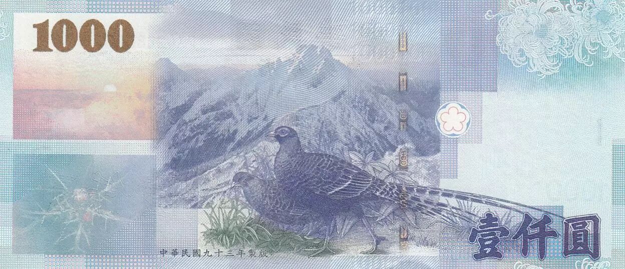 Banknote Taiwan 1000 New dollars - Childrens - Pheasants - 2004 - P.1997
