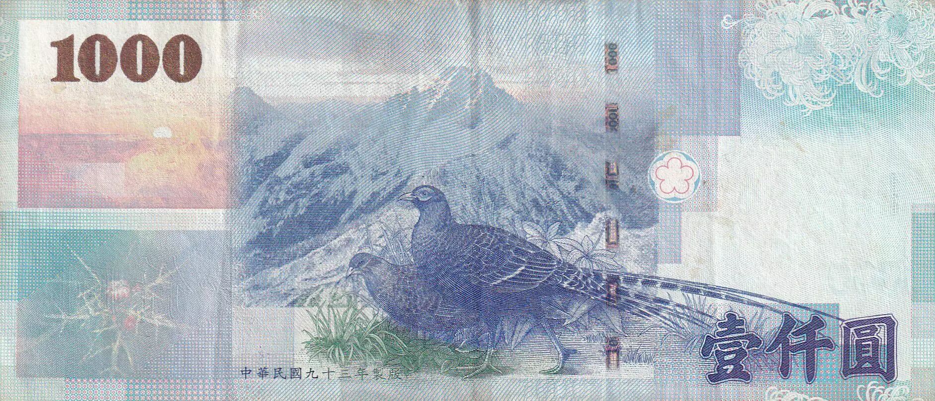 Home > World Banknotes > Asian Banknotes > Taiwan > Taiwan 1000 New dollars - Childrens - Pheasants - 2004 - Serial AA - P.1997