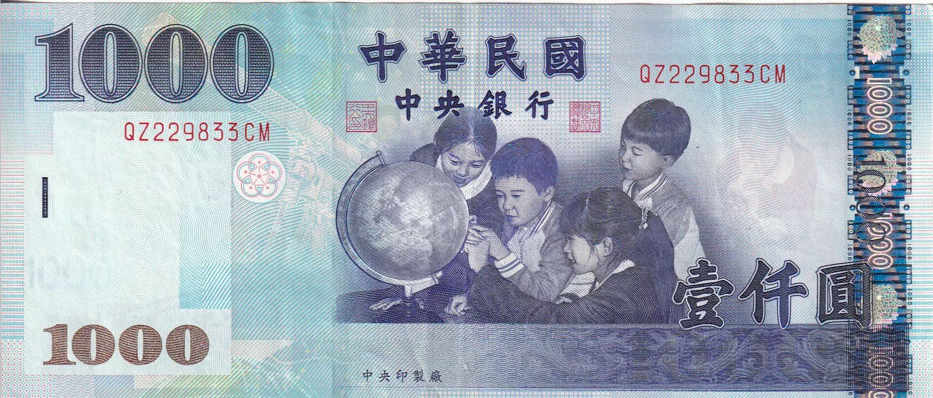 Home > World Banknotes > Asian Banknotes > Taiwan > Taiwan 1000 New dollars - Childrens - Pheasants - 2004 - Serial QZ - P.1997