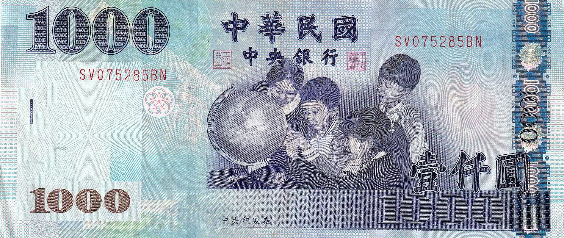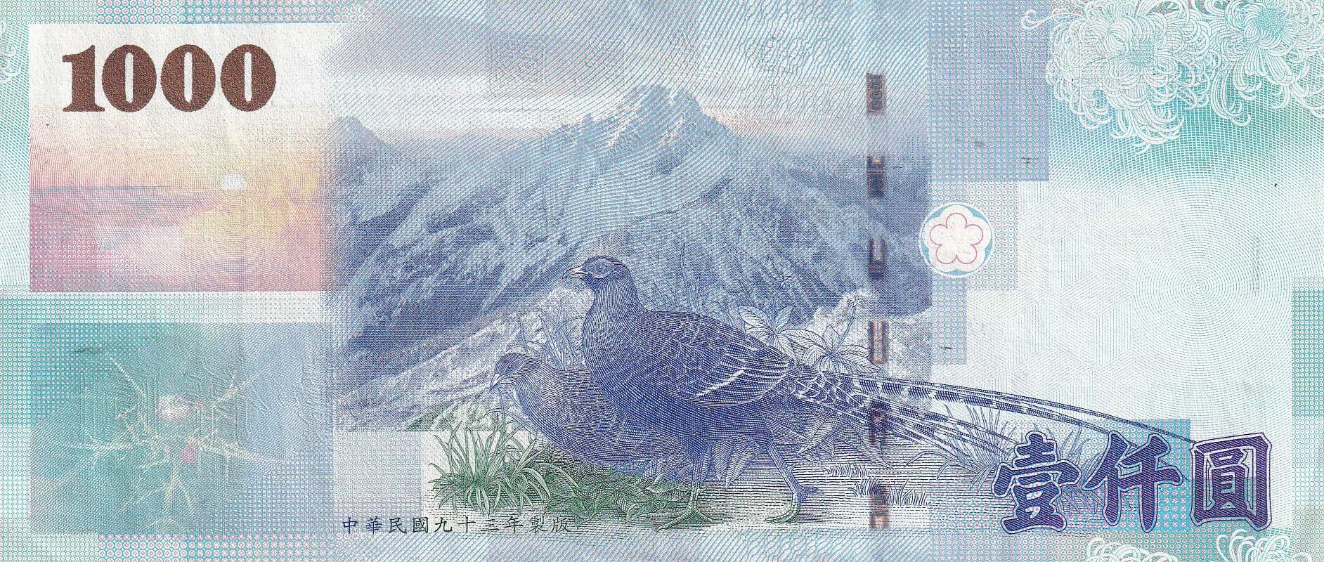 Banknote Taiwan 1000 New dollars - Childrens - Pheasants - 2004 - Serial SV - P.1997